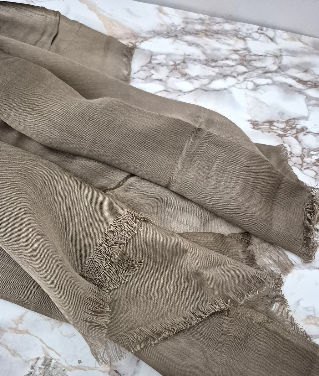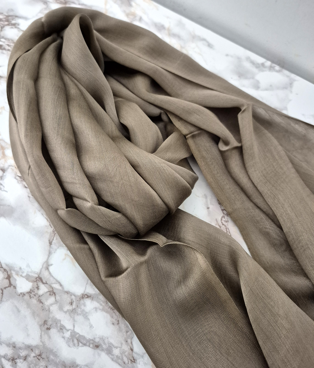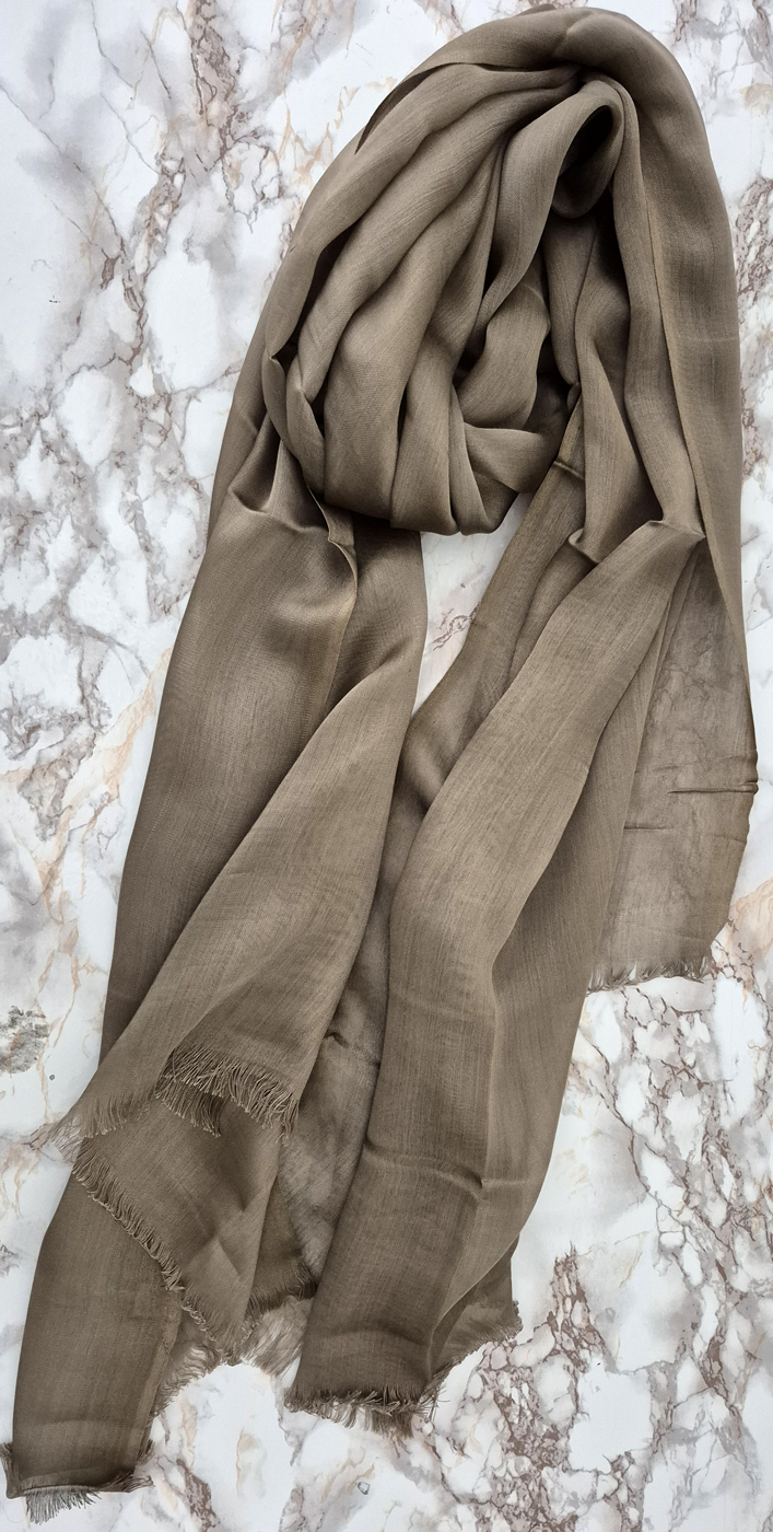 Lightweight Shimmer Hijab with Frayed Edge – Mocha